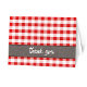 O país sul inspirou Cartões de agradecimentos de gingham vermelho desenhado com "obrigado você" em branco sobre uma ilustração de textura de canvas marrom, em um padrão de gingham vermelho e branco. O dentro é personalizado com sua própria mensagem personalizada de obrigados. Você também pode facilmente excluir o texto modelo para deixar o(s) vazio(s) da(s) placa(s) para escrever manualmente seus próprios sentimentos de gratidão. Estas cartas, com o seu padrão clássico de gingham, são perfeitas para celebrações de Chá de fraldas. Correspondência de postagem (itens comprados separadamente):