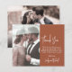 Orçamento, Elegante Boho Terthy Terracotta Moderna Caligrafia Manuscrita Manuscrita Foto Barato Cartões de agradecimentos De Casamento Barato. Na moda, modelo de cartão de casamento com 1 foto na frente e 1 foto no verso. Texto "Obrigado" em bonito letra tipografia de fontes ou roteiro de caligrafia terracotta ou fundo laranja queimado. Personalize com seu nome e obrigado sua mensagem. Se precisar de ajuda ou item correspondente, entre em contato com o designer!