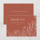 Envie uma mensagem sincera aos seus convidados com este Cartões de agradecimentos de Casamento das Flores de Meadow. Apresentando um delicado design floral na frente, junto com elegante "Obrigado", seus nomes, e data de casamento — este cartão é uma encantadora lembrança do seu dia especial. A parte traseira do cartão inclui espaço para um obrigado personalizável que você envia, permitindo que você adicione uma nota pessoal de gratidão a cada convidado. Perfeito para casamentos de primavera, jardim ou de temas rústicos, este cartão é eterno e atencioso.