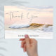 Este cartões de agradecimentos de casamento da praia do pôr do sol do oceano apresenta fontes modernas minimalistas em um maravilhoso fundo costeiro. Você pode personalizar facilmente esse cartões de agradecimentos costeiro com seus próprios nomes e/ou mensagem personalizada no verso. Estas cartas mínimas e simples de agradecimento são uma forma excelente de partilhar a vossa simpática gratidão de casamento na praia com os vossos amigos e familiares. O pôr do sol tropical mágico neste design com o tema oceânico é quente e casual em tons de azul empoeirado e rosa coral.