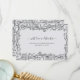 Um elegante cartões de agradecimentos de casamento floral. O fundo é uma cinza azul. Há espaço atrás para uma mensagem pessoal.
