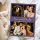Orçamento, Moderno, Elegante "Amor e Obrigados" Script Mauve Wedding 3 Photo Collage (Colagem de Fotos 3) Obrigado Cartão Fino De Barato Orçamentário Baixo. Você pode fazer upgrade para que este cartão seja impresso no estoque de papelão. Apresentando três (3) fotos na frente e uma (1) fotos no verso. Com o texto "Amor e obrigados" em uma fonte de script tipográfico, escrita à mão, com letras sujas, com oscilações de cor branca em fundo de cor roxa ou ameixa empoeirada. Adicione seu nome e obrigado à sua mensagem. Pequena forma cardíaca entre os nomes. Se preferir escrever manualmente a sua nota, basta eliminar o texto de amostra para obter mais espaço. NOTA: verifique todas as informações, fotos e ortografia do seu texto porque você receberá exatamente o que você vê, ninguém verificará nada antes de imprimir! Peça ajuda ao Serviço de Design ao Vivo.