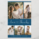 Cartões de agradecimentos de Colagem Fotográfica 5 Moderno e Elegante do Coração Coração no Marinho Médio Azul. Na moda, modelo de cartão de casamento minimalista com cinco (5) imagens em grade na frente e uma (1) foto no verso. Texto de "obrigados e amor" em um cursivo texto escrito à mão com letra cardíaca caligráfica aguda com cauda de inchaço. Personalize com seu nome e obrigado sua mensagem. Se precisar de ajuda ou item correspondente, entre em contato com o designer!