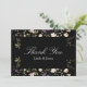 Expresse sua gratidão com o "Cartões de agradecimentos de Casamento de Flores Negras Elegantes". Este design apresenta flores silvestres delicadas colocadas sobre um fundo preto elegante, oferecendo um belo contraste que expele sofisticação. Perfeito para qualquer casamento inspirado na natureza ou moderno, esta carta permite que sua apreciação floresça no estilo. Seus designs pensados e detalhes elegantes fazem disso uma lembrança memorável para seus convidados, garantindo que suas notas obrigados são tão especiais quanto sua celebração.