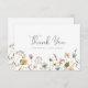 Este elegante cartões de agradecimentos de casamento apresenta lindas cores aquáticas pintadas à mão, cor rosa-claro, azul empoeirado, primavera, amarelo-sábio e flores verdes delicadas e prensadas, com texto de cinza perfeito para um casamento de primavera e verão. Os itens correspondentes são incluídos na suíte de casamento Delicado de Flores Selvagens Presas.