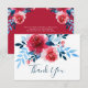Belo e delicado design de cartões de agradecimentos de casamento com flores vermelhas e folhagem azul. Na parte traseira do cartão, você pode adicionar uma doce mensagem personalizada ou deixá-la vazio e simples.