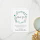 Este maravilhoso círculo de folhas pintadas com aquarelas e botões de flores apresenta uma das mais populares formas modernas de guião em uma cinza macia, e emprega um estilo delicado e adorável. Você pode usar esta mensagem ou personalizar com suas próprias palavras. Simples, moderno e elegante. Expresse sua gratidão à família e aos amigos por participarem em seu dia especial.