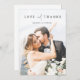 Este simples modelo de cartões de agradecimentos de casamento de fotos personalizadas apresenta um design moderno, elegante, minimalista. A forma padrão é cantos nítidos padrão, mas cantos arredondados também funcionam maravilhosamente com este design, então tente ambos os modos de aparência e veja qual deles o agarra! A frente apresenta sua foto favorita, seus nomes e uma mensagem 'AMOR e OBRIGADOS veiculados com uma combinação impressionante de duas fontes distintas, com 'e' em um script luminoso e fluente entre as outras duas palavras, que estão em cima do caso com uma aparência formal arrojada e nítida. A parte 'AMOR e OBRIGADO do design não pode ser alterada. Ao editar a frente para mostrar seus próprios nomes, você pode mudar o formato para mostrar seus primeiros nomes com sobrenome, ou 'Sr. e Sra......" ou o que lhe convém. No verso, definimos o plano de fundo como transparente, de modo que a cor do papel sirva simplesmente como a cor base. Você pode escolher uma cor para o plano de fundo, se preferir. A cor de texto padrão na parte traseira é um preto ligeiramente suavizado, mas você pode alterá-la se preferir outra cor. Nós colocamos alguns exemplos de texto nas costas para você substituir por sua própria mensagem enquanto você vê ajustado, mas por favor não se sinta restrito por isso. Se você preferir excluir nosso texto de amostra completamente e manter o vazio de trás completamente para que você possa escrever uma nota manuscrita em cada cartão, você pode fazer isso. Ou talvez você queira substituir nosso texto por sua própria mensagem de gratidão e seu próprio fechamento e então assinar seus nomes quando você receber os cartões. Em qualquer caso, lembre-se de remover todo o texto de amostra/espaço reservado em ambos os lados, assim como nossa foto de amostra! Escolhemos preferencialmentes mattas que semirbrilho como a opção padrão de papel, pois ele é adequado para escrevendo sua própria mensagem e não borrão. Pode-se, naturalmente, mudar isto para semirbrilho, ou pode-se pensar em atualizar para algo com uma textura como "Laid" ou "Felt White" de zazzle, que pode adicionar um sentimento de calor e profundidade. Esperamos que você goste de experimentar com vários aspectos desta modelo moderna de cartões de agradecimentos de casamento, e que o faça exclusivamente com as ferramentas intuitivas de design, sua foto favorita e sua inspiração. E por favor, verifique nosso compro por esta design com o texto 'Amor e Obrigados na parte inferior do cartão, e as versões com esse texto em branco!