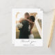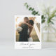 Simples Cartões de agradecimentos de casamento de orçamento fotográfico com "obrigado você" em caligrafia junto com seus nomes abaixo de sua foto favorita. A parte de trás tem seu obrigado personalizado que você envia em preto e branco. Um design minimalista com tipografia quic para um toque elegante.
