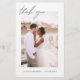 Expresse sua sincera gratidão em estilo de eterno com este Cartões de agradecimentos de Casamento de Fotos do Elegante Script. Apresentando caligrafia refinada, um layout de foto de cheio e elementos minimalistas de design, este cartão é a maneira perfeita de obrigado de seus convidados enquanto mostra um momento apreciado de seu grande dia. Ideal para temas de casamento modernos, românticos ou clássicos, é totalmente personalizável com sua mensagem e foto.