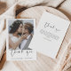 Expresse sua sincera gratidão em estilo de eterno com este Cartões de agradecimentos de Casamento de Fotos do Elegante Script. Apresentando caligrafia refinada, um layout de foto de cheio e elementos minimalistas de design, este cartão é a maneira perfeita de obrigado de seus convidados enquanto mostra um momento apreciado de seu grande dia. Ideal para temas de casamento modernos, românticos ou clássicos, é totalmente personalizável com sua mensagem e foto.