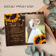 Obrigado Elegante de verão chic ou na moda de casamento outono ORÇAMENTAL barato PAPER FLYER modelo em madeira de celeiro marrom apresentando lindos buquês de girassol, cordas ou luzes cintilantes, e um roteiro de caligrafia em ouro. +++++++++++++++ Fácil de personalizar com seus detalhes e foto! ++++++++++ Adequado para elegantes períodos de Verão ou outono no rusticidade do país ao ar livre ou casamentos de celeiro. ++++++++++++++++++++++++++, LEIA ISTO ANTES DE COMPRAR! Este é um cartão de barato de orçamento impresso em um FLYER. +++ Observe que o PAPEL ORÇAMENTAL É THIN - Você pode fazer upgrade para que este cartão seja impresso no estoque de cartão +++ ENVELOPES NÃO INCLUÍDO. +++ Verifique todas as informações e ortografia do seu texto porque você receberá exatamente o que você vê - ninguém mais verificará nada antes de imprimir. +++ Esta placa foi projetada para o tamanho de 4,5" x 5,6". Caso você escolha outro tamanho do cartão e o texto saia da página, tudo precisa ser corrigido antes de adicionar o produto ao carrinho. Peça ajuda ao Serviço de Design ao Vivo.