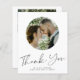 Simples e moderno roteiro caligrafia na moda barato preto e branco cartões de agradecimentos de casamento personalizado com 2 fotos, mensagem pré-impressa e assinatura em ambos os lados. +++++++++ Observe que as cores do texto e do plano de fundo podem ser alteradas para corresponder ao esquema de cor do seu casamento. Você pode alterá-las após selecionar a opção PERSONALIZAR TI.