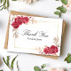 Expresse sua gratidão com o Cartões de agradecimentos de Casamento do Quadro Dourado Vermelho Floral. Adorado com florais vermelhos vibrantes e enquadrado em ouro luxuoso, este cartão incorpora a elegância do seu dia de casamento. Oferece uma maneira sincera de obrigado aos seus convidados pelo seu amor e apoio, fazer que cada mensagem se sinta pessoal e apreciada. Esta carta maravilhosamente trabalhada serve como um lembrete duradouro do seu dia especial, permitindo que você transmita sua apreciação enquanto mostra a alegria e beleza de sua celebração.