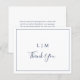 Simples cartões de agradecimentos de casamento orçamentário com um design moderno, mas elegante, com seu monograma de duas letras junto com "obrigado você" em uma letra manuscrita cercada por uma fina borda. O verso tem sua mensagem personalizada. Todos os elementos de design estão em azul marinho e podem ser alterados para qualquer cor desejada na ferramenta de edição design. Um design chic e na moda que é excelente para um casal minimalista.