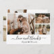 Cartões de agradecimentos Fotográfico de Casamento de Script Leitura, Elegante, Minimalista, de Volta e Mão Branca. modelo de cartão de casamento na moda com três (3) fotos na frente e uma foto no verso. Com o texto "Amor e obrigados" em uma letra cursiva, escrita à mão, com letra maiúscula, na escrita da tipografia. Adicione o seu nome e obrigado à sua mensagem. Um pequeno rabisco entre os nomes. Se preferir escrever manualmente a sua nota, basta eliminar o texto de amostra para obter mais espaço. Se você precisar de ajuda ou item correspondente, entre em contato comigo!