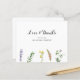 Boho Budget Wedding Cartões de agradecimentos com aquarela pintada com flores silvestres em um layout simples na parte inferior juntamente com "Amor e Obrigados" em um roteiro caprichoso. Este Cartões de agradecimentos floral botânico de Casamento é excelente para um primavera de estilo rústico ou casamento de verão.