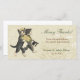 O doce gato de noiva vintage segura um buquê de casamento de rosa branca e o gato do Groom fica ao seu lado com seu chapéu preto. Fundo floral de marfim. O cartão é acentuado com uma fita de cetim. Personalize o obrigado de casamento que você cartão com fotos para mostrar seu apreço pelo presente.