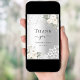 Um cartões de agradecimentos moderno e elegante sem fotos. Um fundo de olhar mal prateado. Decorado com rosas brancas, flores florais e rendas brancas. Na frente do texto: Obrigado Back: Modelo pela sua nota de agradecimento e nomes.