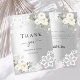 Um cartões de agradecimentos moderno e elegante sem fotos. Um fundo de olhar mal prateado. Decorado com rosas brancas, flores florais e rendas. Na frente do texto: Obrigado Back: Modelo pela sua nota de agradecimento e nomes.