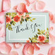 Cartões de agradecimentos romântico e moderno de casamento com rosas de cor vermelha e folhagem verde em fundo de menta.