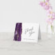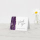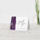A borda esquerda deste elegante obrigado de casamento plano... você tem uma design de agata de cor-d-água roxa, aparada com brilho dourado. O texto está em um script dourado e sans serif fonts em um fundo branco.