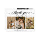Orçamento, Elegante, Casamento com Marinho Mão (3) Três Cartões de agradecimentos De Colagem De Fotos. modelo de cartões de agradecimentos de casamento com três fotos na frente e uma foto na parte traseira. Com o texto "Amor e obrigados" em uma fonte de script de tipografia escrita, escrita à mão, com traços de cor branca sobre fundo azul marinho. Personalize o seu nome personalizado e a sua mensagem de obrigado. Um pouco de coração entre os nomes. Se precisar de ajuda ou item correspondente, entre em contato com o designer! Se preferir escrever manualmente a sua nota, basta eliminar o texto de amostra para obter mais espaço.