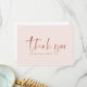 Belo cartão de casamento moderno. Apresenta as palavras obrigado em um falso script rosa gold na moda em um plano de fundo cor-de-rosa pincelado na frente com um simples sentimento no verso.