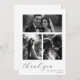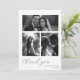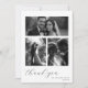 Expresse sua gratidão em estilo com este cartão de obrigado de casamento personalizável. Apresentando espaço para múltiplas fotos e uma elegante fonte de script, este design de colagem moderno permite mostrar suas memórias favoritas de casamento. Personalize com seus nomes, data de casamento e fotos para criar um sentimento sincero para a família e amigos. Um eterno e na moda para obrigado dos seus convidados por fazerem parte do seu dia especial.