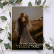 Este simples obrigado elegante de ouro preto e brilhante que o teu cartão de casamento dá ao teu casamento moderno um final perfeito. A design moderna apresenta um clássico fundo de ouro ombre, uma fonte elegante Obrigado, e uma foto de sua escolha. Muito espaço para a sua mensagem personalizada no verso. Este Dourado Cartões de agradecimentos de casamento fotográfico moderno e elegante fará uma memória duradoura do seu casamento para seus amigos e famílias.