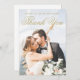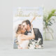 Este modelo de cartões de agradecimentos de casamento, com na moda, apresenta um roteiro elegante em uma matiz de ouro. Escolhemos este tom com o selecionador de cores nas ferramentas de edição, e há quase sombras ilimitadas neste espectro e outras que podemos escolher, por isso, considerem o vosso gosto e experiência. Você pode preferir, por exemplo, um tom mais leve, mais brilhante, etc. Você pode inserir qualquer código de cor que encontrar em sua pesquisa e usar a cor exata que se adequa às suas necessidades. E, claro, use as ferramentas de design para torná-lo exclusivamente seu com sua foto favorita!