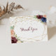 Este cartões de agradecimentos de casamento dobrado em ouro geométrico é perfeito para um casamento rústico. O design apresenta uma aquarela desenhada à mão, púrpura, marinho, pincel, burgundy, flores marinhos, folhas verdes e douradas que adornam uma elegante moldura geométrica. Personalize o dentro da placa com seus nomes e uma mensagem de obrigado. Ou deixe o vazio da seção de mensagens e escreva uma nota personalizada em cada cartão. Estas cartas podem ser usadas para um casamento, chá de fraldas, ou quando quiser dizer obrigados.