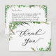 Este cartões de agradecimentos romântico e elegante apresenta um design botânico com "Obrigado" em um roteiro moderno. Um design de aquarela leve e arejada perfeito para dizer obrigado aos seus convidados. Personalize a parte de trás com sua mensagem pessoal para a família e os amigos.