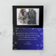 Cartões de agradecimentos colorido com o tema de Natal dos flocos de neve, uma lanterna de férias e fundo azul ousado. Adicione sua foto favorita do seu casamento! Mensagens fáceis de atualizar - ou utilizar o nosso, e atualizar os seus nomes, antes de colocar no seu carrinho de compro.