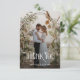 Cartões de agradecimentos de casamento moderno e elegante. Design apresenta foto, programa de tipografia obrigado em letras brancas, nomes, data de casamento na frente. Personalize ainda mais com sua mensagem e outra foto no verso.