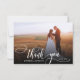 O moderno Elegante Chic Boho Calliografia Roteiro Casando 2 Cartões de agradecimentos Fotográfico. modelo obrigado de na moda com uma foto vertical de cheio na frente com o texto "Obrigado" em uma mensagem de tipografia timítica, escrita com letras brancas, com uma cobertura branca na frente e uma foto do lado reverso e uma mensagem de obrigado pré-feita. Placa de dois lados com 2 fotos. Facilmente personalizar seu nome e obrigado da mensagem. Se preferir escrever manualmente a sua nota, basta eliminar o texto de amostra para obter mais espaço. Se você precisar de ajuda ou item correspondente, entre em contato comigo!