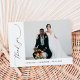 Este cartões de agradecimentos de casamento de dois lados apresenta um design preto e branco minimalista com elegante caligrafia moderna. A frente exibe uma mensagem simples "Obrigado", enquanto a parte traseira oferece espaço para sua nota personalizada. Uma forma eterno e na moda de expressar sua gratidão aos convidados depois de seu dia especial.