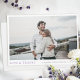 Este simples modelo de cartões de agradecimentos de casamento de fotos na moda apresenta os seus nomes e datas abaixo da sua foto, juntamente com 'AMOR & OBRIGADOS realçados em uma elegante sombra de roxo real. E a cor padrão para seus nomes e data na frente é um preto ligeiramente suavizado. Você pode optar por alterar a fonte, a pontuação ou a cor usada para vários elementos de texto deste design na frente e/ou no verso. Por exemplo, você pode escolher alterar a cor do texto 'LOVE & OBRIGADOS. Na parte de trás, escolhemos uma matiz de fundo que não é bem branca, é uma cinza muito clara chamada Fumaça Branca. Você pode mudar isso facilmente selecionando uma das cores básicas nas ferramentas de edição, inserindo outro número de cor no lugar da nossa, se você tiver uma matiz específica em sua pesquisa, ou olhando para a ferramenta do espectro de cores e escolhendo algo à vista. Colocamos algum texto de marcador de posição no verso para que você exclua e substitua por sua própria mensagem, com ou sem seus nomes, se você quiser assinar manualmente quando receber os cartões. Mas você pode simplesmente optar por excluir nosso texto de marcador de posição e deixar o vazio de trás completamente para que você possa escrever uma mensagem manualmente em cada cartão e assinar seus nomes. O tipo de papel padrão, matte, tem um calor suave e resiste a manobras, então é uma escolha excelente para escrevendo sua própria mensagem. Em vez disso, você pode editar isso e escolher semirdano ou outro tipo de papel. Em qualquer caso, lembre-se de que há um texto de marcador de posição também no verso e apague todo o nosso texto de amostra/marcador de posição em ambos os lados do cartão! Escolhemos uma cinza escura para o texto na parte de trás, mas você pode mudar a cor e/ou a fonte de acordo com o seu estilo. Use as ferramentas intuitivas de design, sua foto favorita e sua inspiração para fazer com que este cartões de agradecimentos moderno de casamento chique seja exclusivamente seu! Temos uma seleção de outro casamento minimalista moderno, cartas de agradecimento em vários formatos, então, por favor, procurem mais ideias na nossa loja!