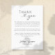 Casamento minimalista obrigado cartas com um simples fundo branco, o título 'obrigado você' que incorpora um coração de amor, um obrigado personalizado que você envia, seus nomes e data de casamento.