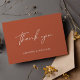 Um simples e moderno Cartões de agradecimentos de Scripts de Caligrafia em Terracotta quente e quente para enviar depois do seu casamento. Personalize-o com os seus próprios nomes na frente e a mensagem no verso ou elimine o texto no verso e adicione a sua nota manuscrita.