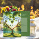 Envie um cartões de agradecimentos verde com seus monogramas. Cartões de agradecimentos plano com árvores bonitas com uma árvore majestosa no centro junto com sotaques verdes e cardíacos. As costas têm espaço para a sua mensagem especial juntamente com os seus nomes desejados. Personalize o texto frontal e posterior. Use a modelo para criar seu próprio cartões de agradecimentos de casamento.
