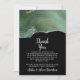 Cartões de agradecimentos de casamento com espiral verde agata e design brilhante deslizante sobre fundo preto.