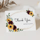 Este cartões de agradecimentos de casamento de girassol rústico e rosas de lama é perfeito para um casamento de celeiro ou rancho. Este obrigado você apresenta girassóis amarelados de cor d'água com rosas burguentos e bófia e verde-salva de bebê com uma estrutura oval dourada. Este é um esquema de cores perfeito para o final do verão ou casamento outono.