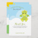 Este adorável cartões de agradecimentos chá de fraldas apresenta um dragão verde sentado numa nuvem anunciando que um novo dragão bebê chegou! A parte de trás apresenta erva verde, torre e sol sorridente sobre fundo de nuvem azul e branca. Fácil de personalizar com opções personalizadas. Clique no botão "Personalizar" para alterar o texto ou personalizar ainda mais.