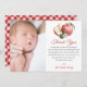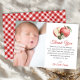 Envie sua sincera gratidão com esses chás de fraldas personalizados, cartas de agradecimento que contêm uma borda vermelha de gingham, maçãs aquáticas e espaço para sua foto favorita de bebê. O doce design emparelha-se perfeitamente com o tema Apple of Our Eye chá, criando uma manutenção significativa para familiares e amigos.