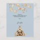 Um fundo azul. Estrelas, e um ursinho de pelúcia sentado numa tenda, Personalize e adicione nomes e uma data à frente. Traseira: Obrigado, nota e nome(s) 1 folha = 1 cartões de agradecimentos impresso borda a borda.