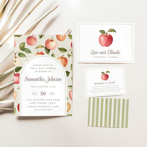 Obrigado todos os seus convidados do seu chá de fraldas com este cartões de agradecimentos personalizável de maçã fofo!