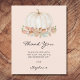 Este cartões de agradecimentos de chá de fraldas de queda apresenta uma abóbora de aquarela e verde em um fundo macio de pêssego. Perfeito para uma garota do outono, ou chá de fraldas neutro em relação a gênero. Facilmente personalizável. Porque nós criamos a nossa trabalho de arte, você não encontrará esta imagem exata de outros designers. Original Watercolor © Michele Davies.
