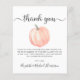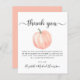 Obrigado os convidados do seu chá de fraldas com este cartões de agradecimentos bonitinho e amigável, com "obrigado você" em um roteiro de cinza com baloiços e uma cor d'água laranja de abóbora. Por baixo, você pode personalizar facilmente seu obrigado, enviar uma mensagem ou deixar o vazio para uma nota manuscrita.