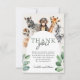 Expresse sua gratidão em estilo com nosso Cartões de agradecimentos de Chá de fraldas de Animais Safari Selvagens. Este cartão cativante é a maneira perfeita de obrigado dos seus convidados após um chá de fraldas com tema safari. Apresentando animais de zoológico como elefantes, girafas, macacos, zebras e avestruzes, ele adiciona um toque de gentileza à sua apreciação. A design da selva tropical encantadora, juntamente com o charmoso tema "um pouco selvagem", cria um inesquecível obrigado que você faz. Com a elegante tipografia caligráfica e um cenário de floresta exuberante, essa carta deixará uma impressão duradoura. Mostre seu apreço de uma forma selvagem e memorável com nosso cartões de agradecimentos.